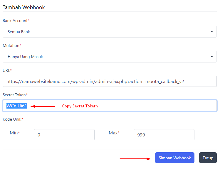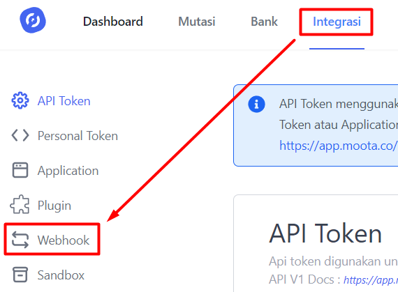 - Setting Webhook di Moota