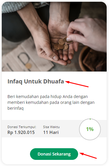 - Klik pada judul campaign yang membuat Kamu ingin berdonasi di dalamnya (bisa juga dengan klik tombol Donasi Sekarang)