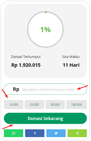 - Setelah membaca deskripsi campaign, Kamu bisa input nominal donasi, bisa juga klik Pilihan Nominal yang ada, lalu klik Donasi Sekarang