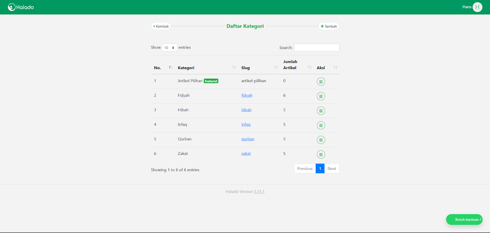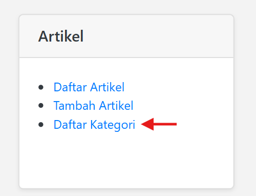 Daftar Kategori Artikel 30 October 2025 Klik Daftar Kategori Artikel pada halaman Dashboard Admin Maka akan tampil semua Daftar Kategori Artikel yang sudah dibuat (Pada halaman Daftar Kategori Artikel juga bisa menambah kategori artikel baru) Share: