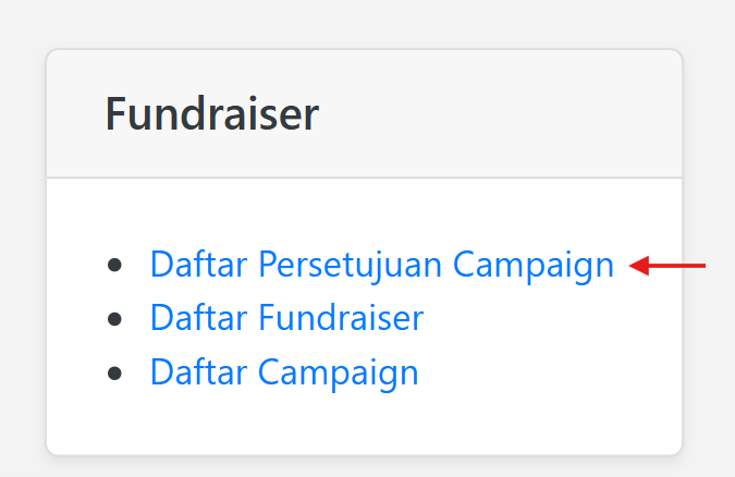 - Klik Daftar Persetujuan Campaign pada halaman Dashboard Admin