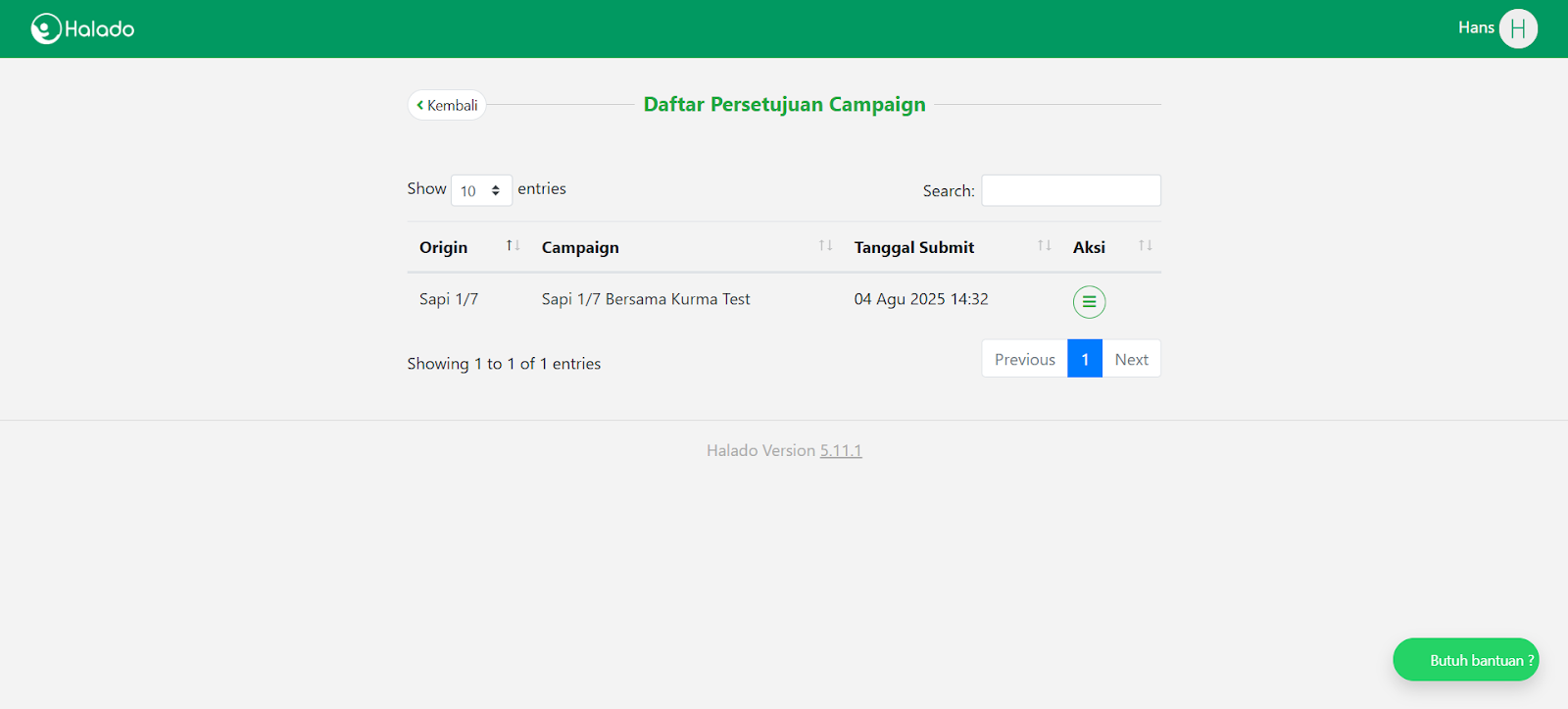 - Maka akan tampil Daftar persetujuan Campaign yang ada