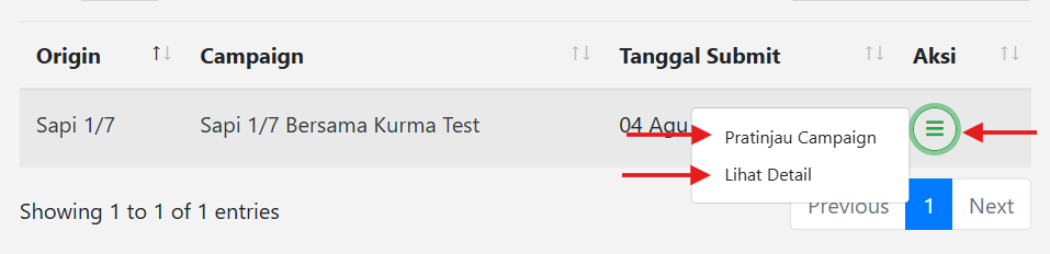 - Daftar Persetujuan Campaign juga bisa melihat request campaign dari fundraisernya dan juga bisa melihat detailnya untuk disetujui campaignnya atau tidak