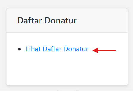 - Klik Lihat Daftar Donatur pada halaman Dashboard Admin