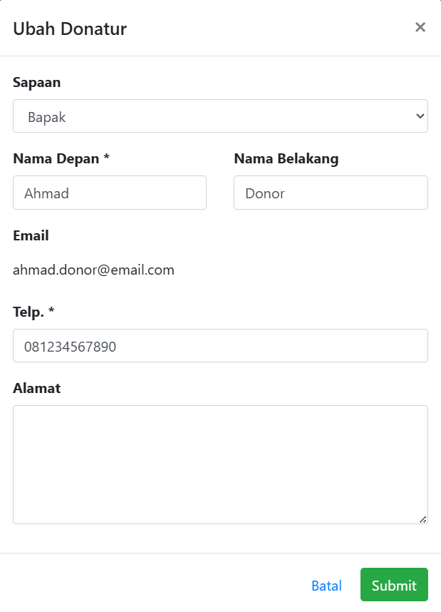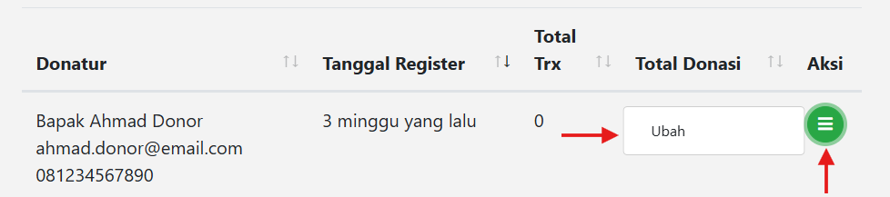 - Daftar Donatur juga bisa diubah/diedit seperti contoh pada gambar diatas