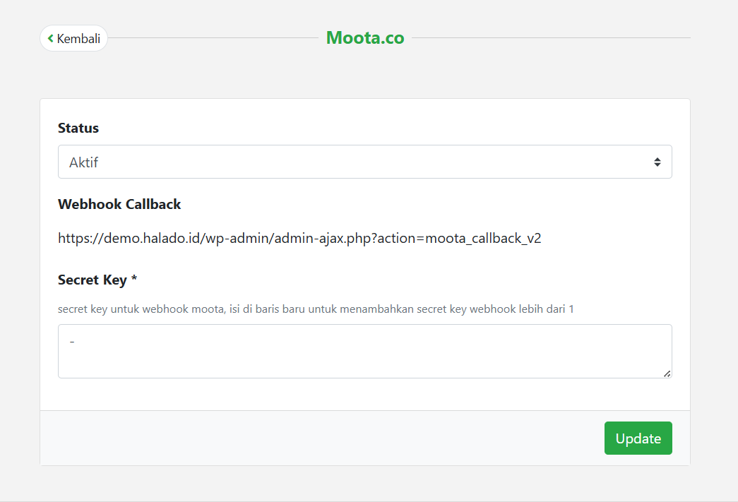 • Pengaturan pembayaran dengan Moota.co juga bisa kamu aktifkan atau nonaktifkanĀ