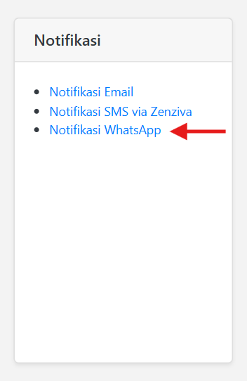 - Klik Notifikasi Whatsapp pada halaman Dashboard Admin