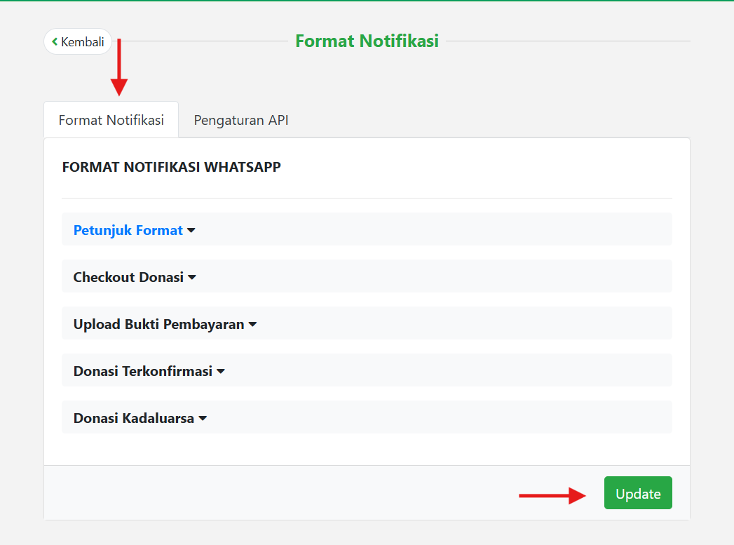 - Kamu bisa mengatur Format Notifikasi sesuai Whatsapp sesuai dengan kebutuhan situs web kamu
