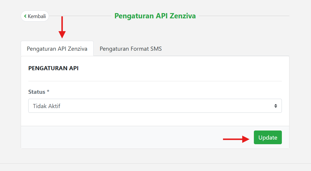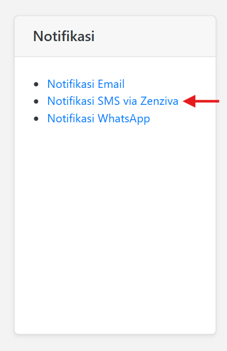 - Untuk SMS Klik Notifikasi SMS pada halaman Dashboard Admin