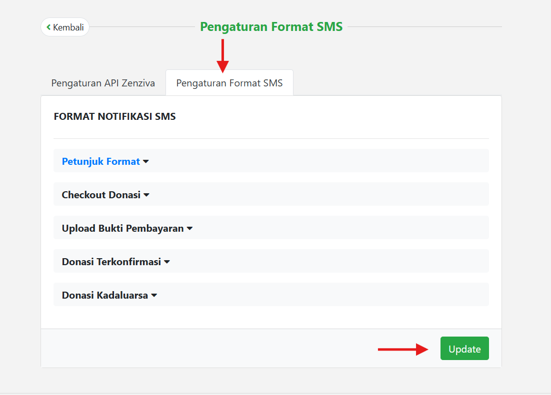 - Untuk Format SMS juga bisa kamu atur sesuai dengan kebutuhan Web