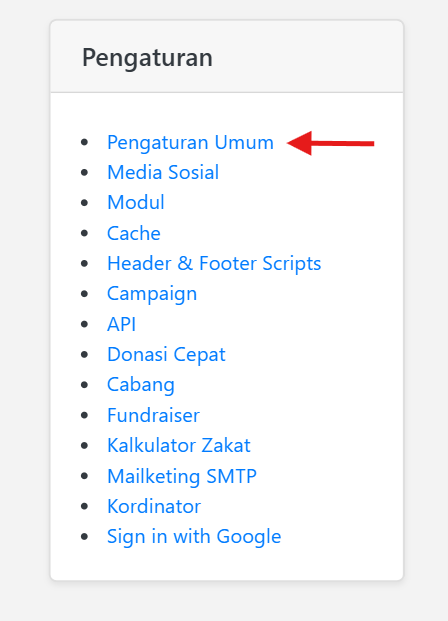 - Klik Pengaturan Umum pada halaman Dashboard Admin