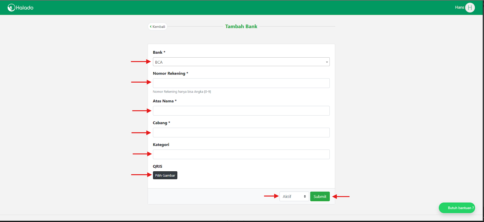 - Setelah semua kolom terisi, maka sudah bisa klik Submit dan Bank baru akan muncul di Daftar Bank