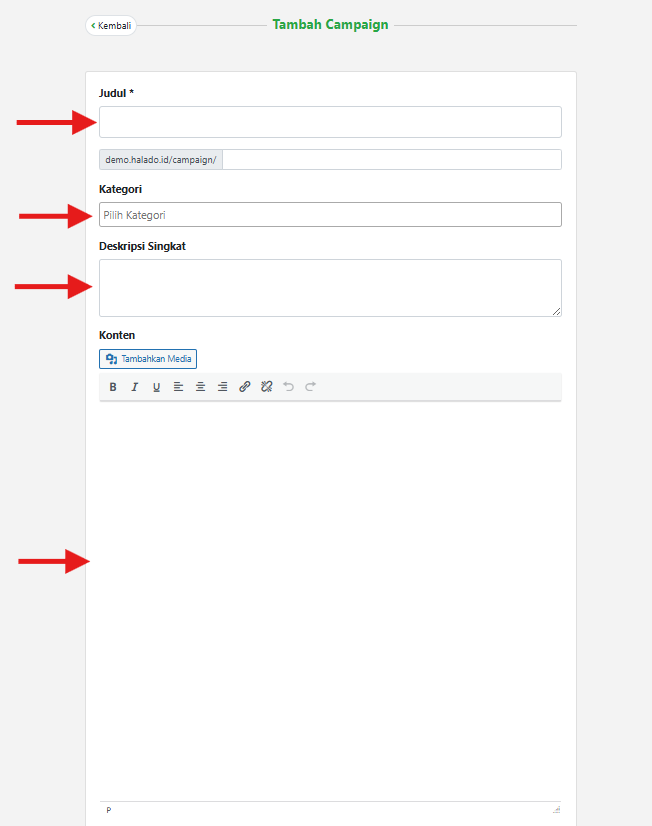 - Mengisi Kolom Konten ( Kolom konten juga bisa diisi dengan Foto atau Video )