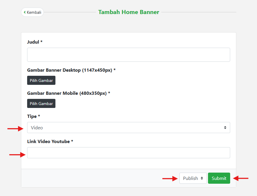 - Jika memilih tipenya Video maka bisa diubah dengan tipe video pada kolom “Tipe”