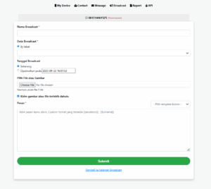 • Klik tombol Submit (warna hijau) untuk menyimpan dan mengirimkan broadcast.
