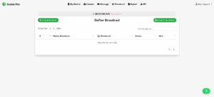 • Jika belum ada broadcast yang dibuat, tabel akan menampilkan pesan: “Data belum tersedia.”