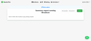 Menu View Running Broadcast digunakan untuk memantau status broadcast (pesan siaran) yang sedang berjalan pada sistem. Dengan fitur ini, admin dapat mengetahui apakah ada kampanye pesan massal yang aktif, serta melihat progres pengirimannya.