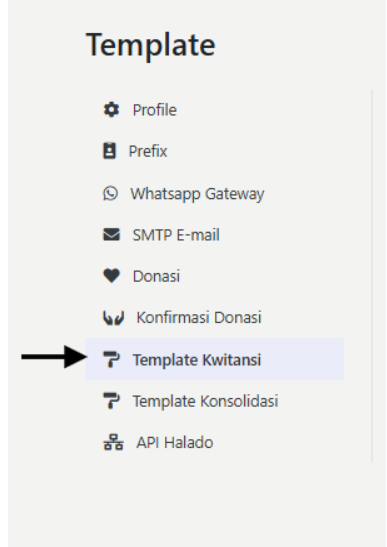 Menu Template Kwitansi berfungsi untuk mengatur tampilan kwitansi donasi, baik versi: