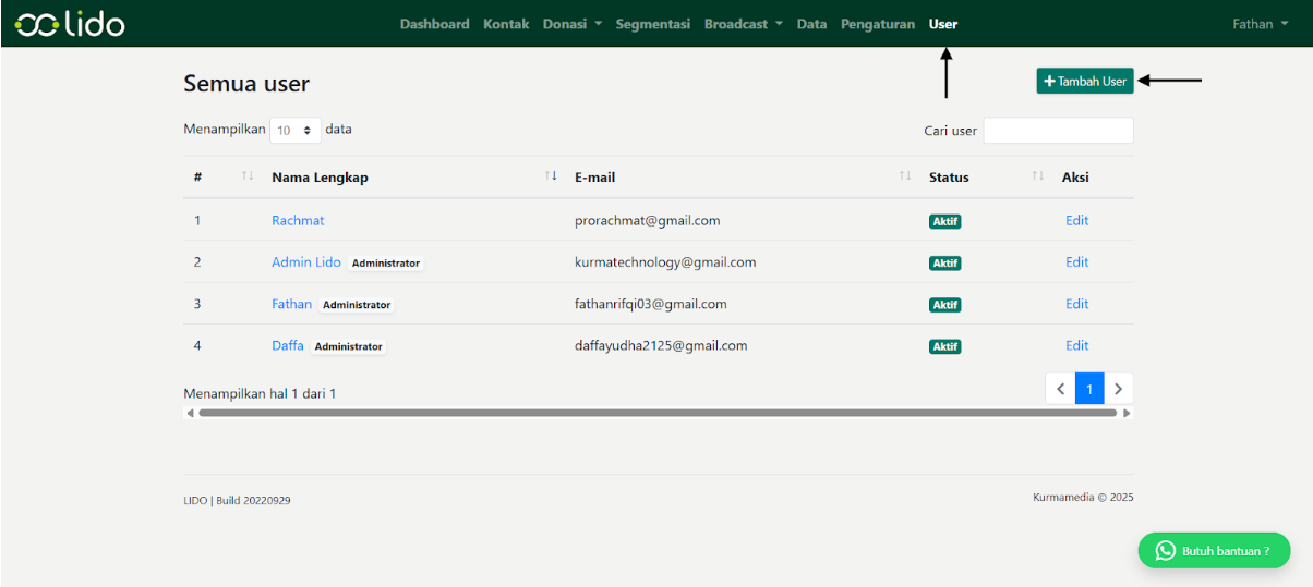 Penjelasan Menu User dan Cara Penggunaan Fitur Tambah User di LIDO